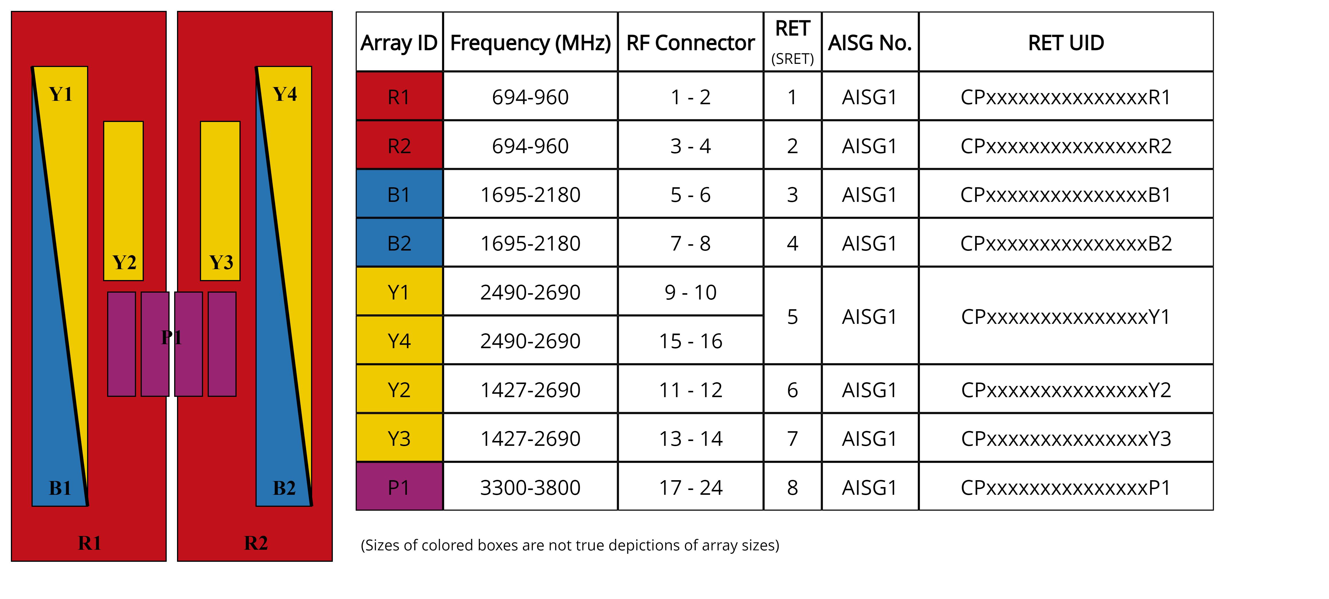 Internal RET High band (1) | Low band (2) | Mid band (5)
