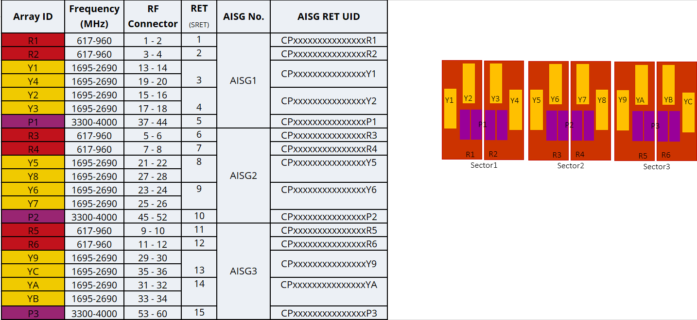 Internal RET High band (3) | Low band (6) | Mid band (6)