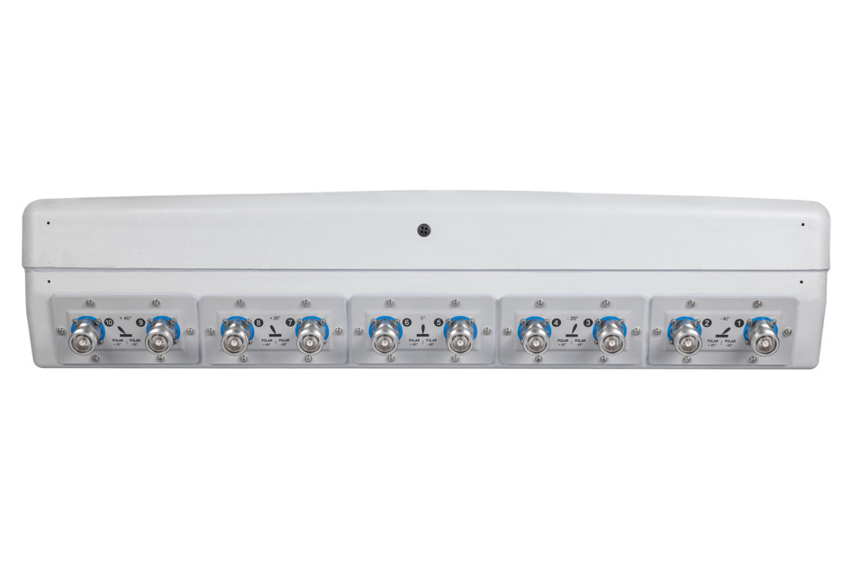 10-port multibeam antenna, 10x 1710–2180 MHz, 5x 10-14° HPBW, fixed electrical tilt