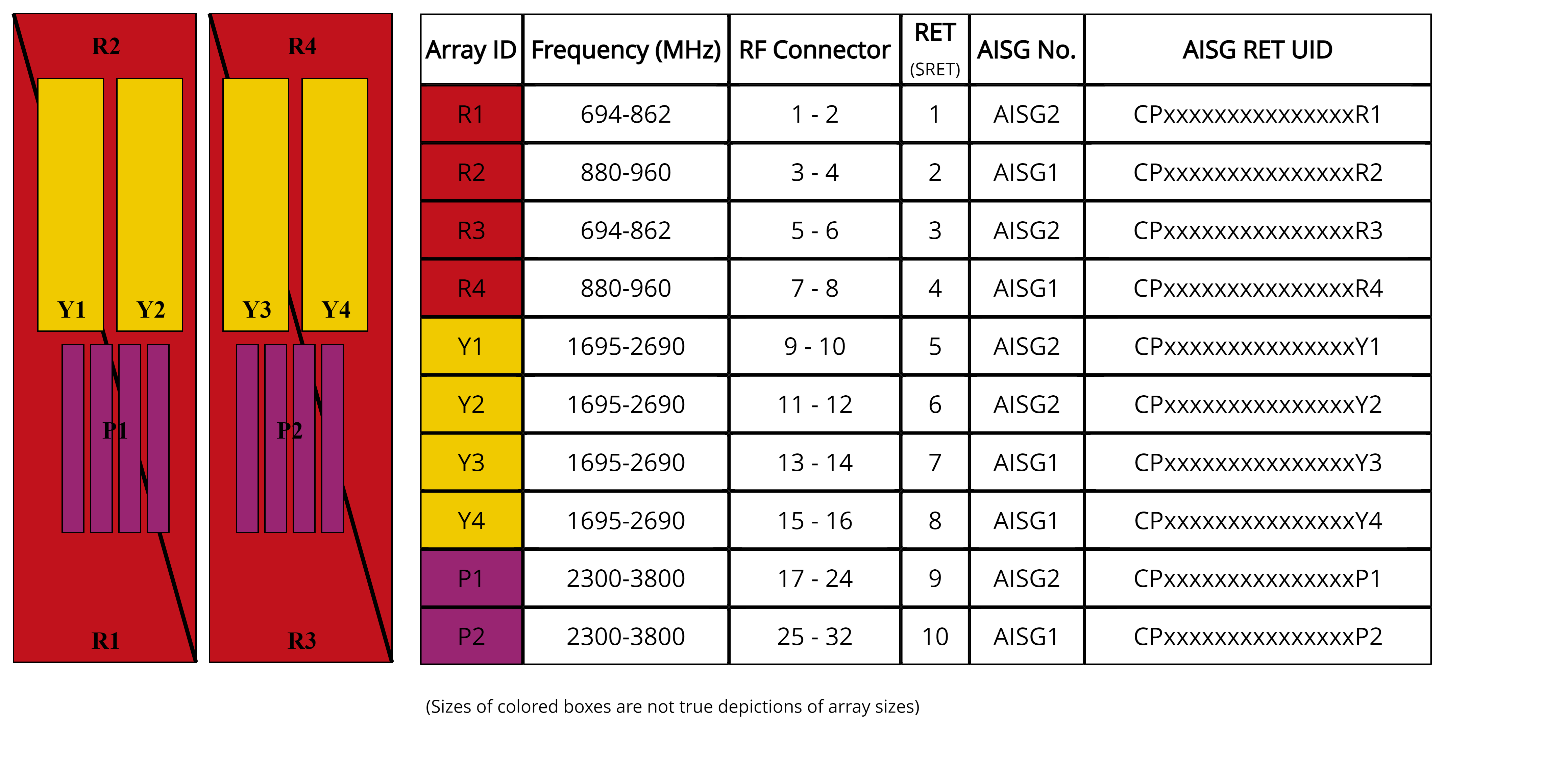 Internal RET High band (2) | Low band (4) | Mid band (4)