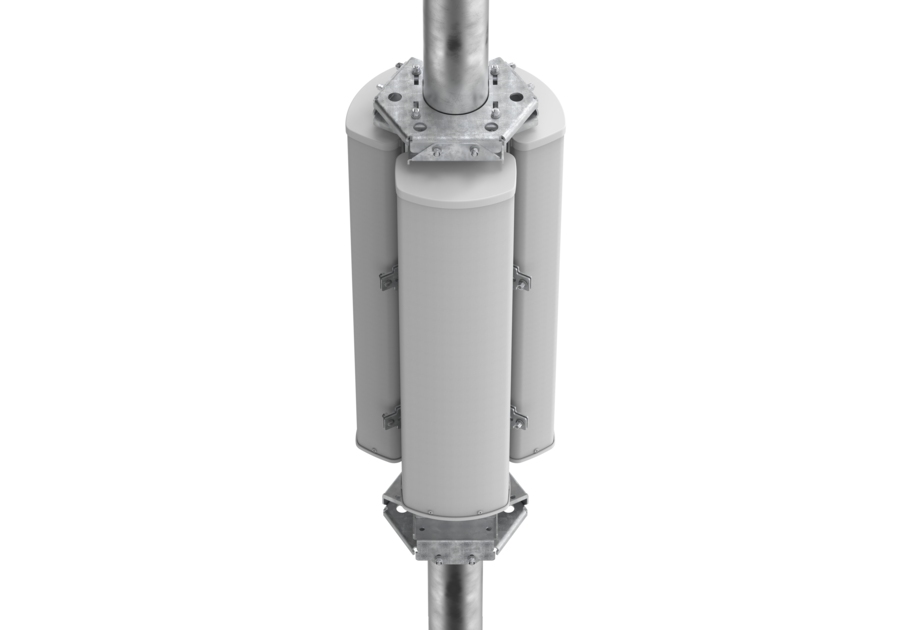 Tri-sector solution that includes 3 KVVSS-65A-R3-V1 antennas and mounting kit to install them on a pipe