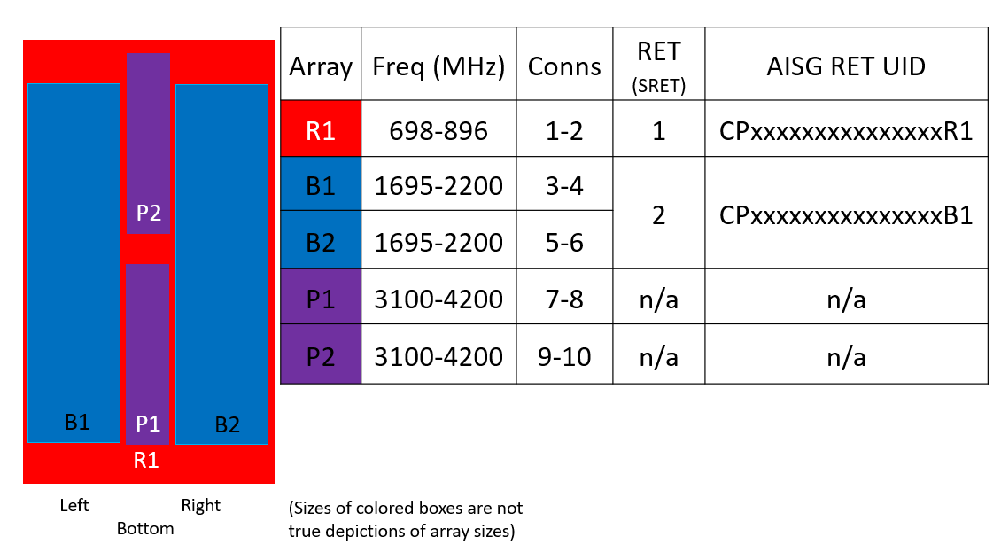 • One LB RET and one HB RET. Both high bands are controlled by one RET to ensure same tilt level for 4x MIMO