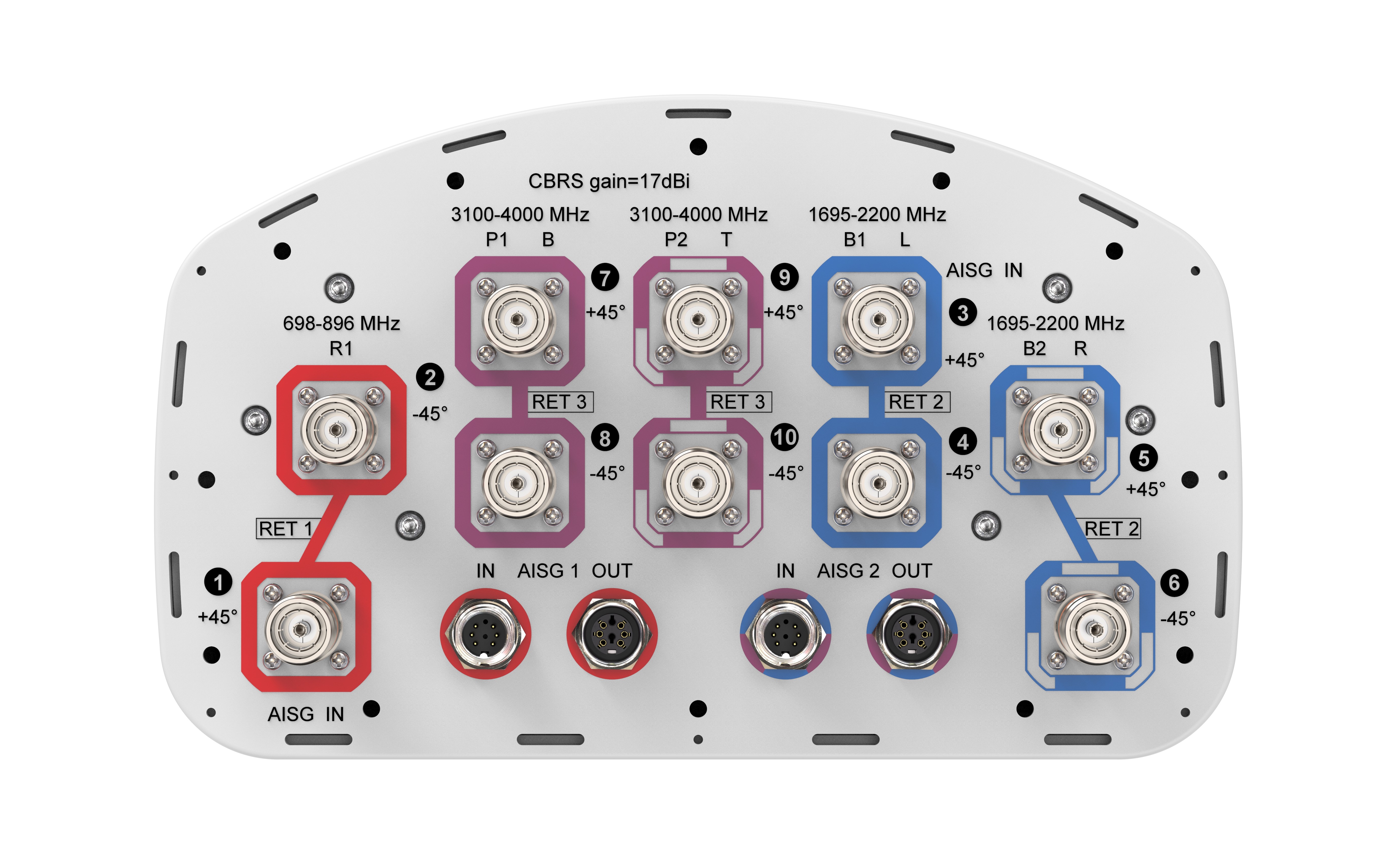 - Internal SBT on low and mid band allow remote RET control from the radio over the RF jumper cable