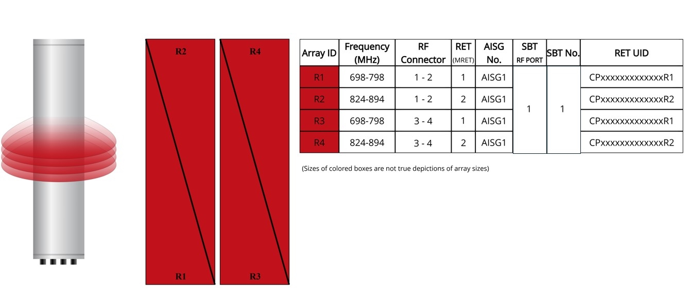 • Ideal 4T4R low band antenna for use with an FD mMIMO antenna