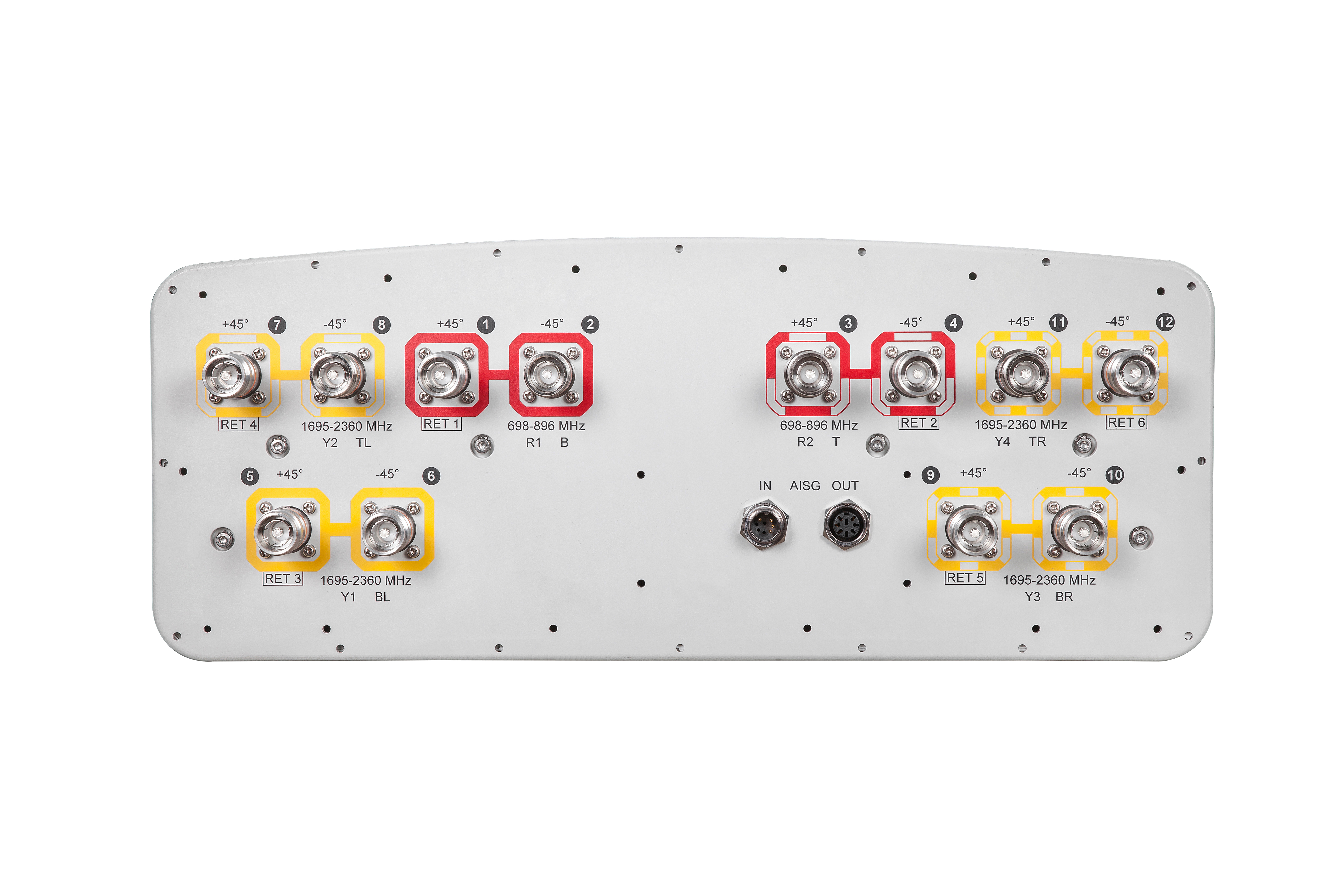 12-port sector antenna, 4x 698–896 and 8x 1695–2360 MHz, 45° HPBW, 6x RET
