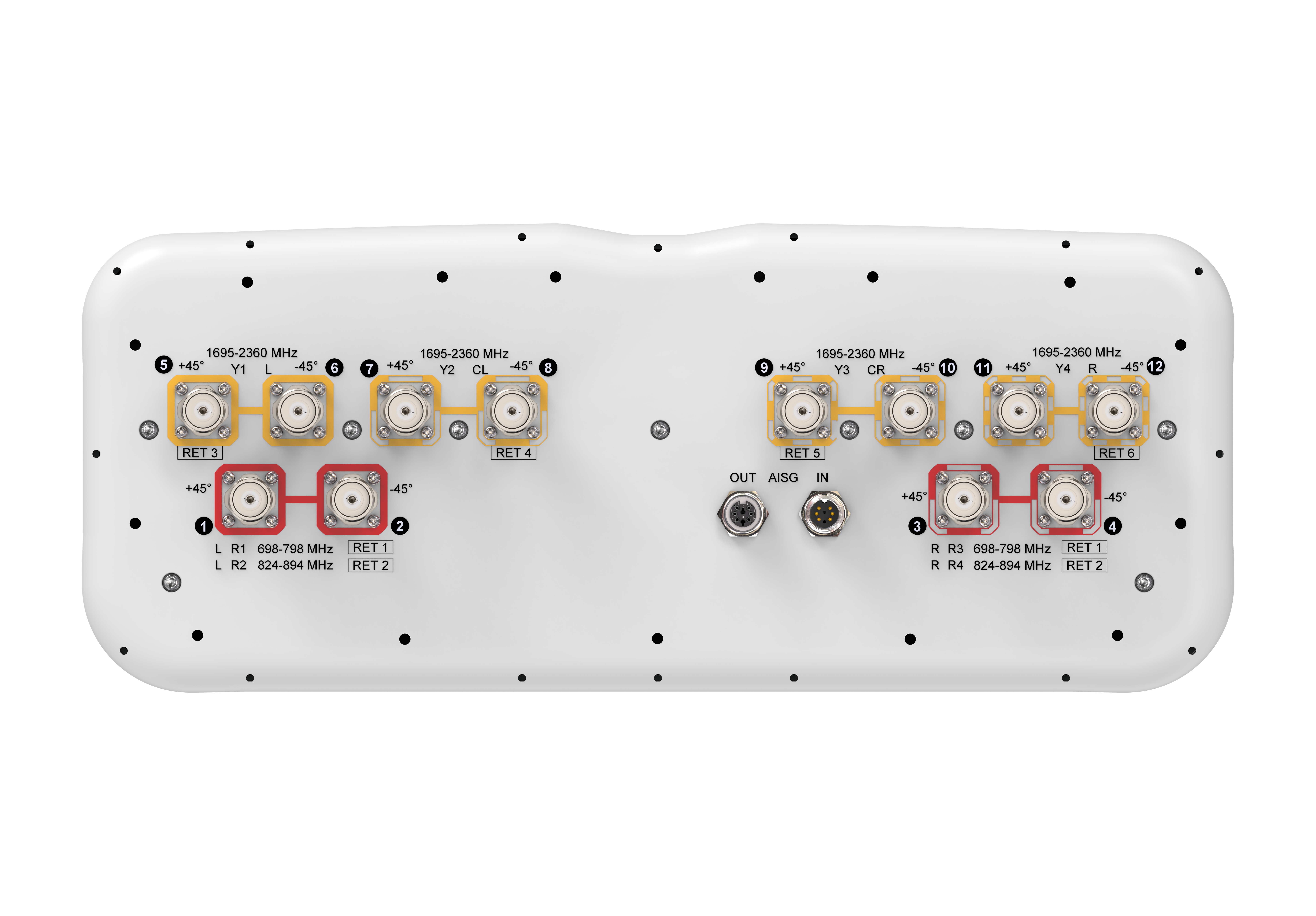 • Features broadband Low Band (698-894 MHz) and High Band (1695-2360 MHz) arrays for 4T4R (4X MIMO) capability for 700 and 850 MHz, AWS, PCS and WCS applications