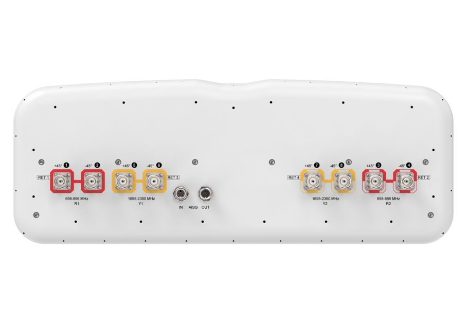 8-port sector antenna, 4x 698–896 and 4x 1695–2360 MHz, 45° HPBW, 4x RET