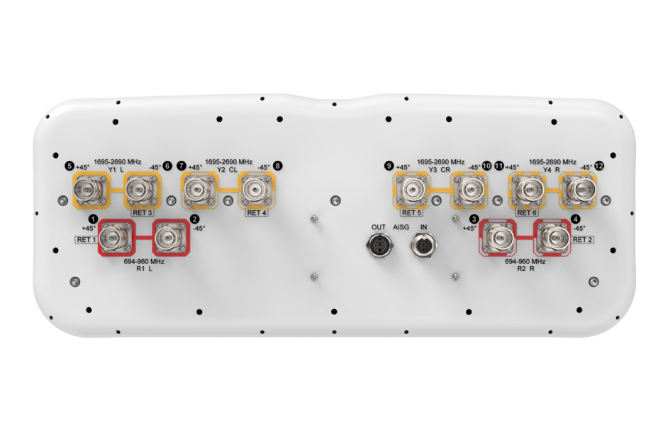 12-port sector antenna, 4x 694–960 and 8x 1695-2690 MHz, 65°HPBW, 6x RET
