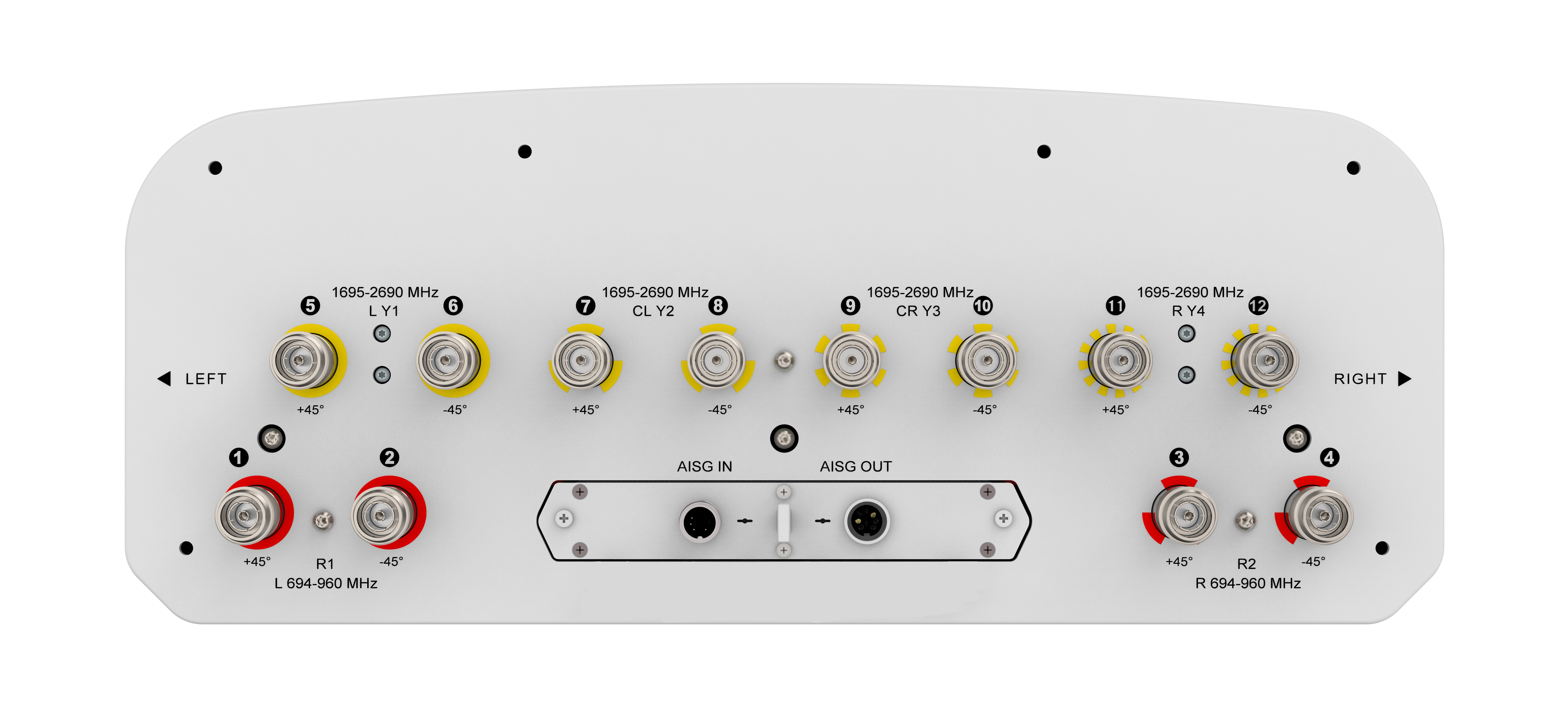 12-port sector antenna, 4x 694–960 and 8x 1695–2690 MHz, 65° HPBW, 6x RET.