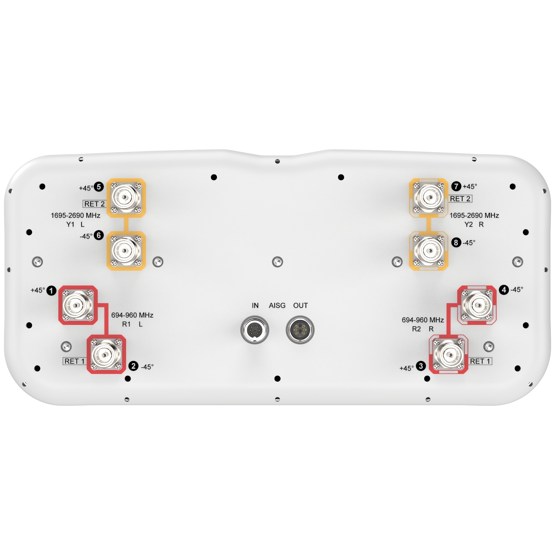 8-port sector antenna, 4 x 694–960 and 4 x 1695–2690 MHz, 65° HPBW, 2x RET