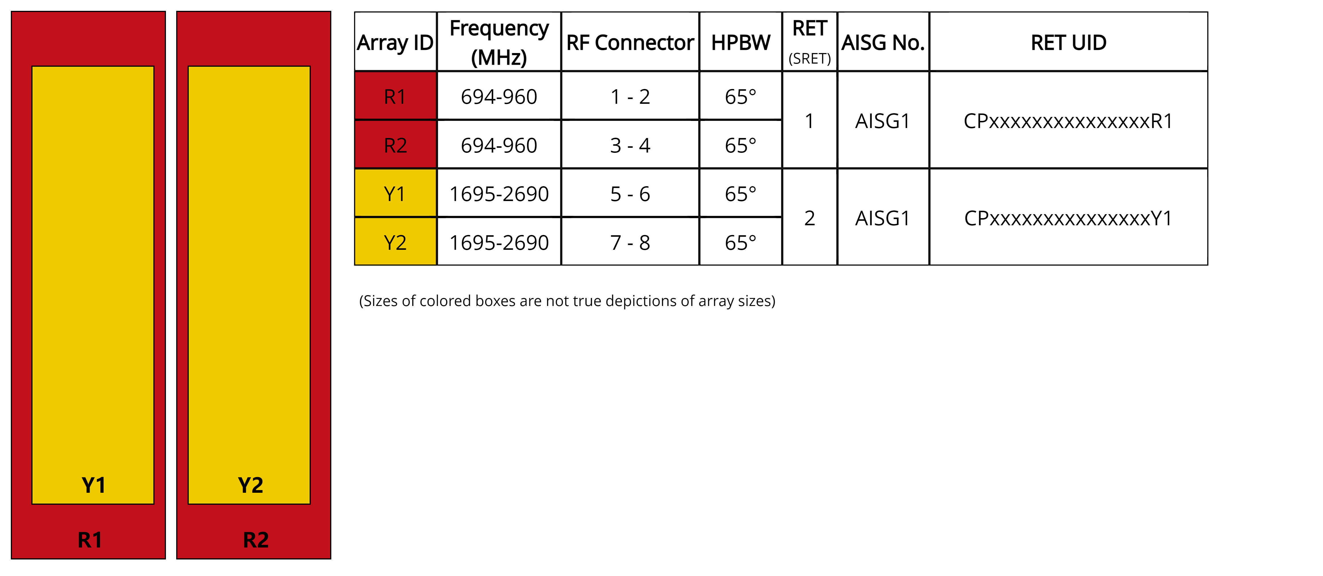 | Internal RET | Low band (1) | Mid band (1) |