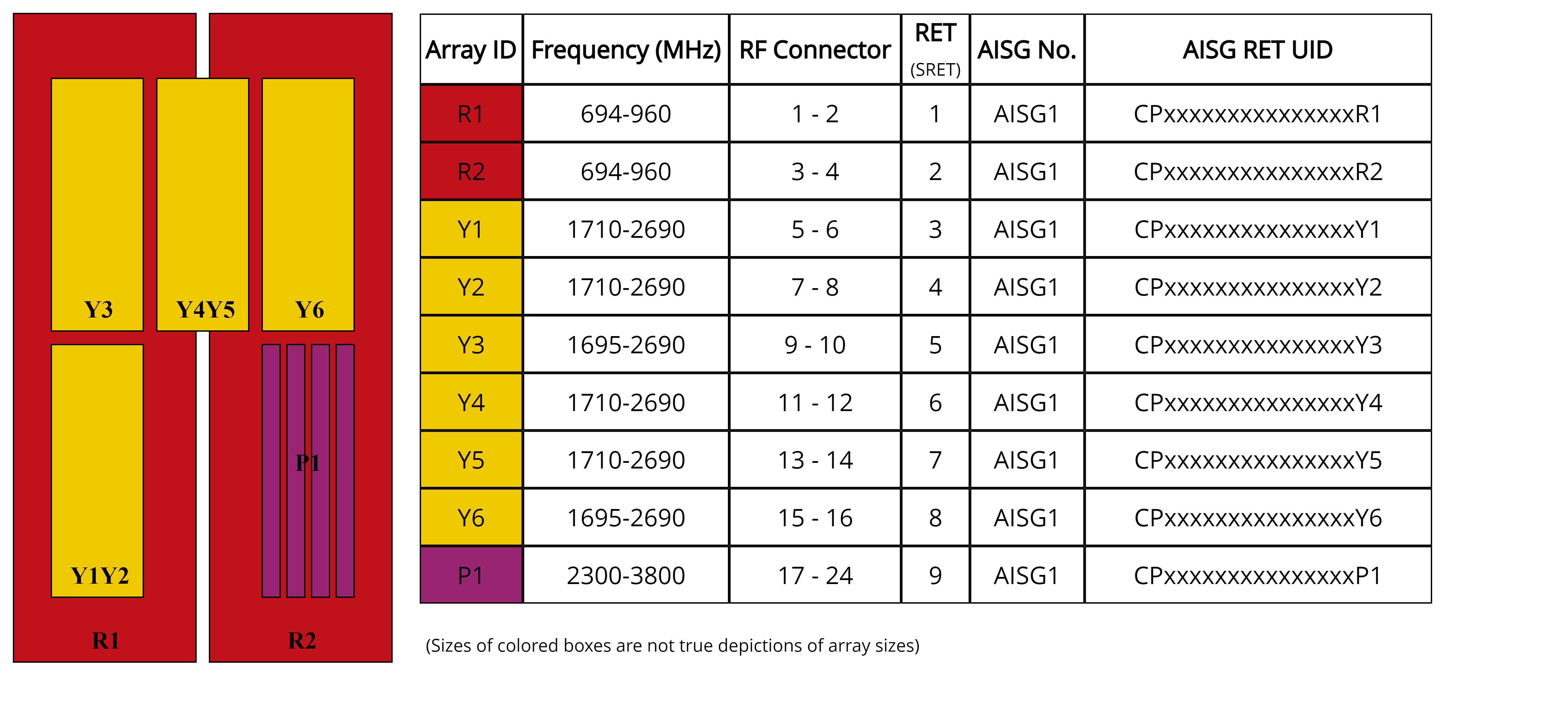 | Internal RET | High band (1) | Low band (2) | Mid band (6) |