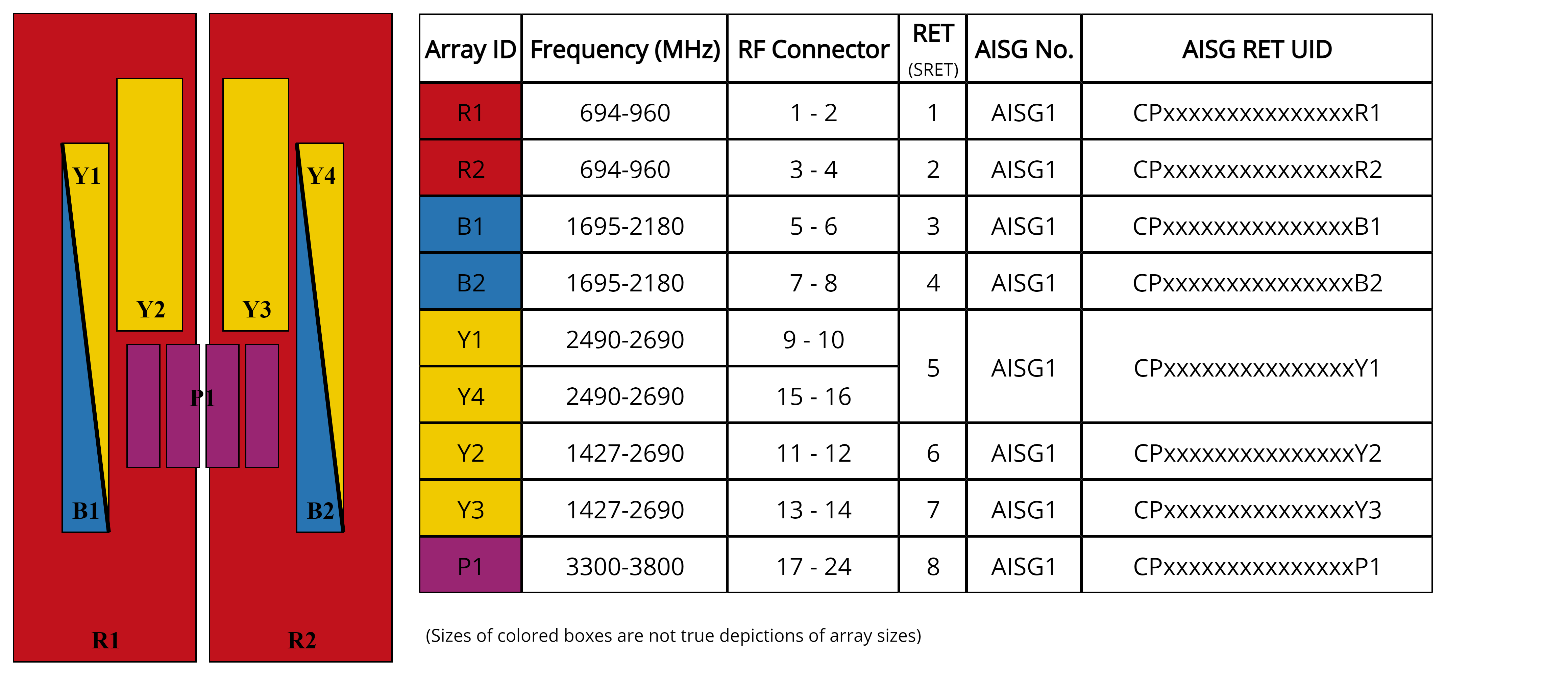 - Includes eight Internal RET’s. All 2490-2690MHz (Y1&Y4) ports share common RET