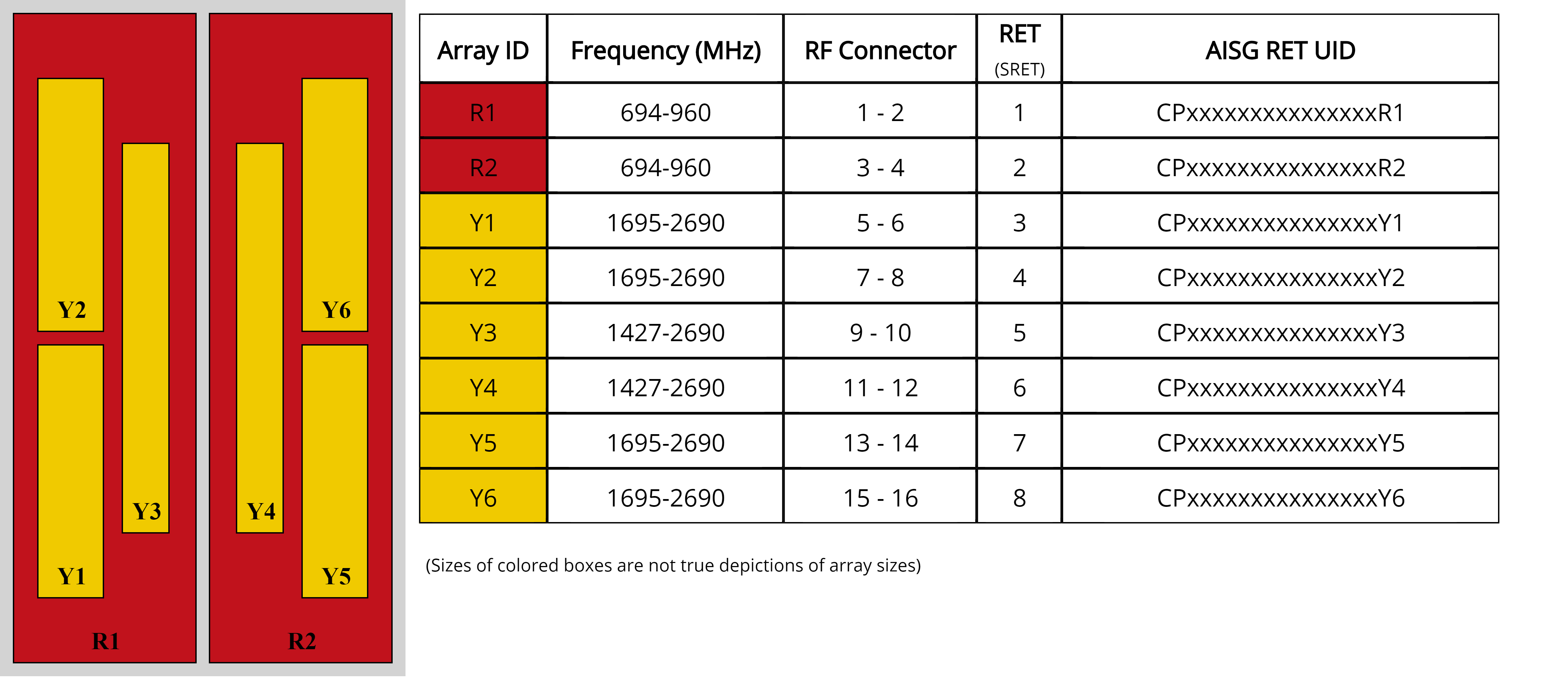 • Supports re-configurable antenna sharing capability enabling control of the internal RET system using up to two separate RET compatible OEM radios (Supports_r)