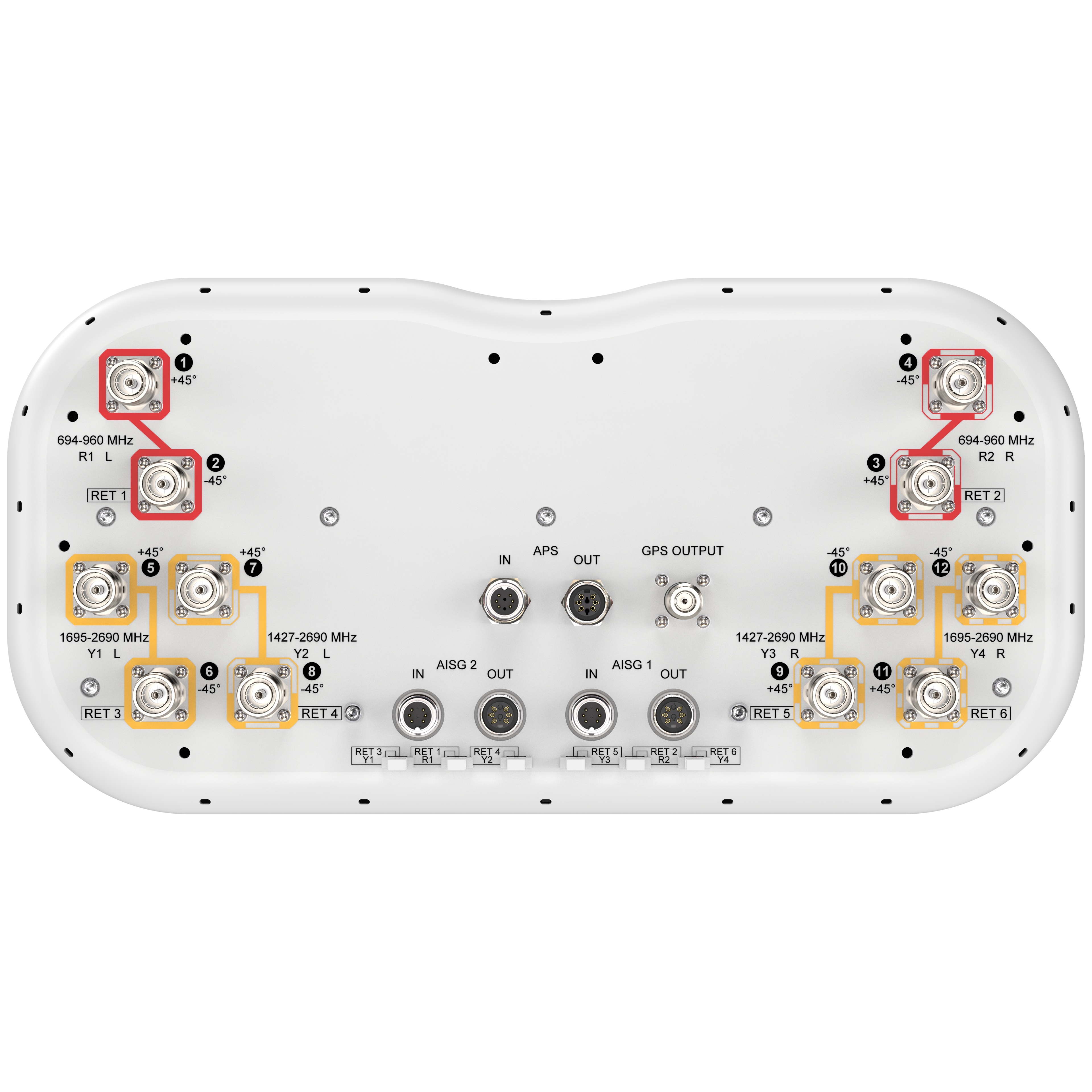 12-port sector antenna, 4 x 694–960, 4 x 1427–2690 and 4 x 1695-2690 MHz, 65° HPBW, 6x RET
