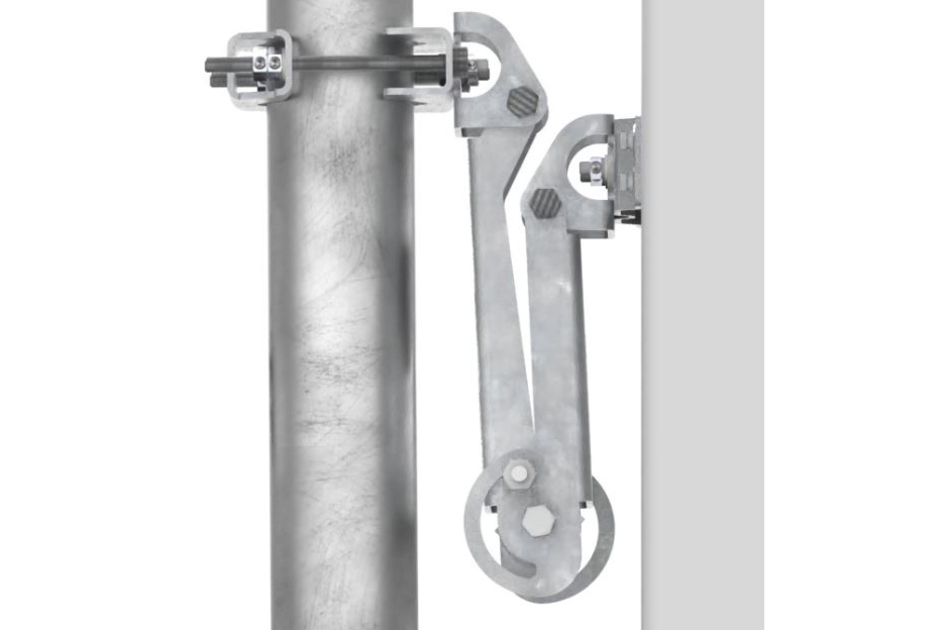 Wide Profile Antenna Downtilt Mounting Kit for 2.4 - 4.5 in (60 - 115 mm) OD round members. Kit contains one scissor top bracket set and one bottom bracket set.