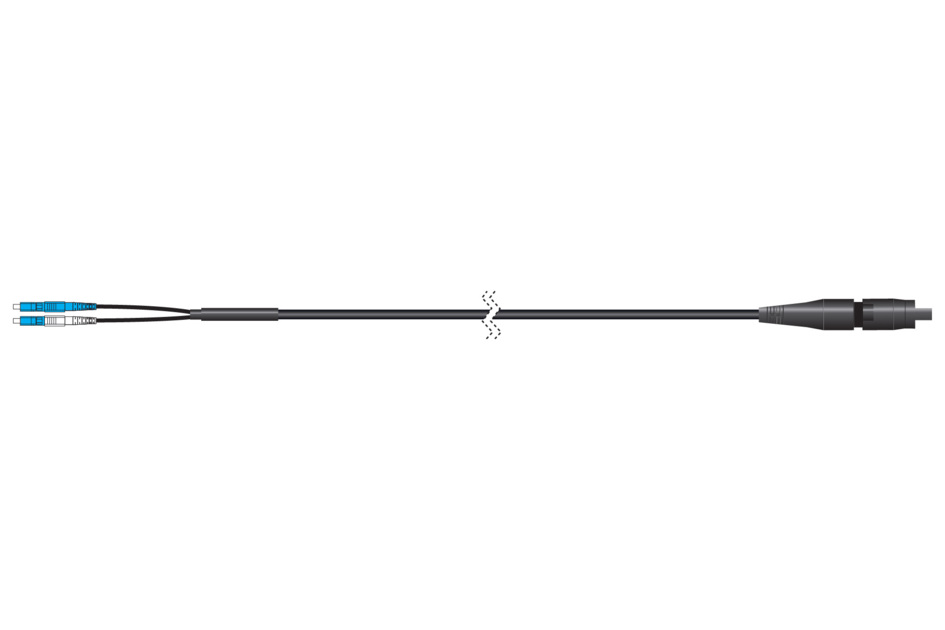 HELIAX® Discrete, ruggedized, bend insensitive single mode 2 fiber cable, DLC to OptiTip Compatible connector