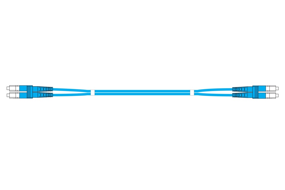 HELIAX® Patch Cord, 2F Multimode Zip Cord Aqua LSZH/Riser, Clippable DLC (UPC)-Clippable DLC (UPC)