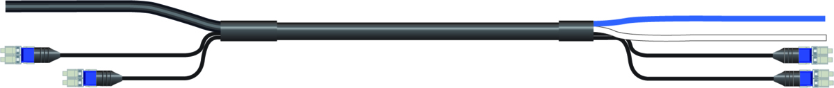 HELIAX® Hybrid Cable Assembly, 2 power conductors, 6mm2 Blue /White, black jacketing, aluminum armor, 4-fiber. End 1: DLC, power cord for RRU. End 2: DLC, power conductors for junction box.