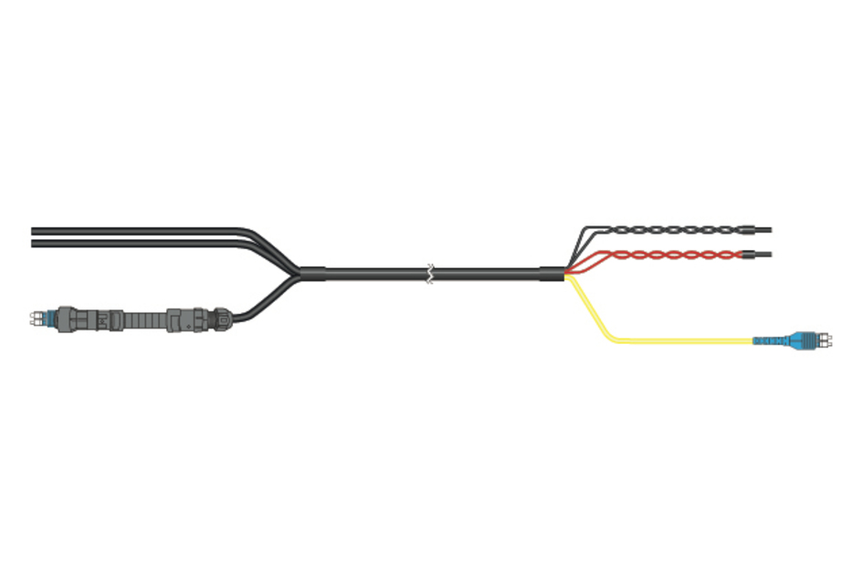 HELIAX® Hybrid Assembly, 6-OVP to RRU, UL Type TC-ER, 4 power conductors 10 AWG at OVP, 2 power cords 8 AWG at RRU, 2-fiber connectors, PVC jacket, aluminum armor, OVP gland insert kit included