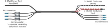 - 8AWG power cord connected to two 10 AWG conductors provides the equivalent of 7 AWG performance