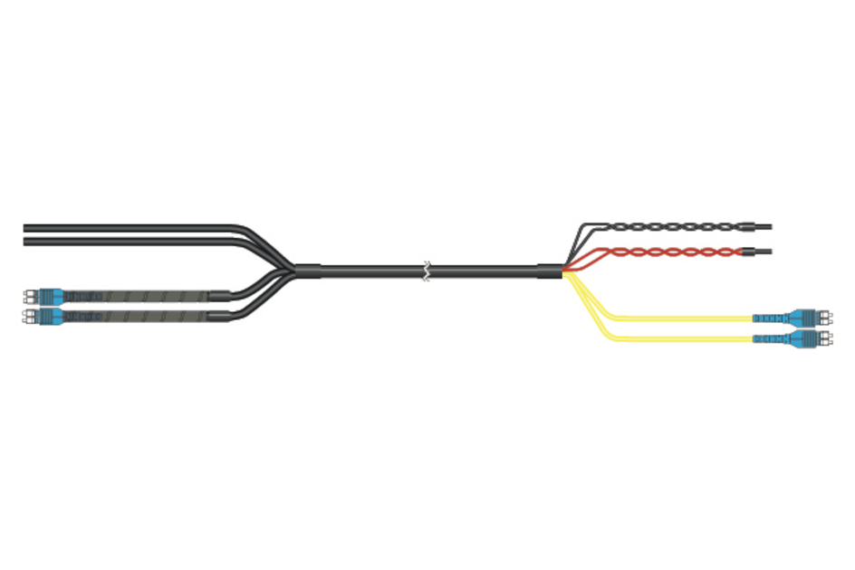 HELIAX® Hybrid Cable Assembly, 6-OVP box to RRU, UL Type TC-ER, 4 power conductors 10 AWG, 4-fiber, PVC jacket, aluminum armor, OVP gland insert kit included