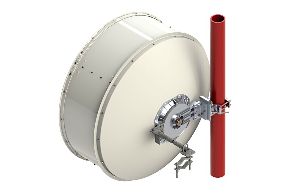 1.2 m | 4 ft Sentinel® High Performance Antenna, dual-polarized, 7.125–8.500 GHz, PBR84, white antenna, flexible woven polymer gray radome without flash, standard pack—one-piece reflector