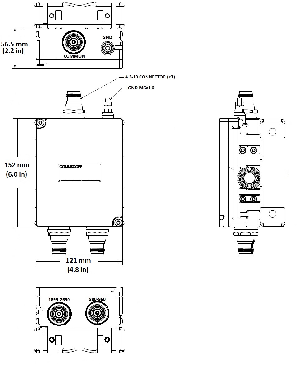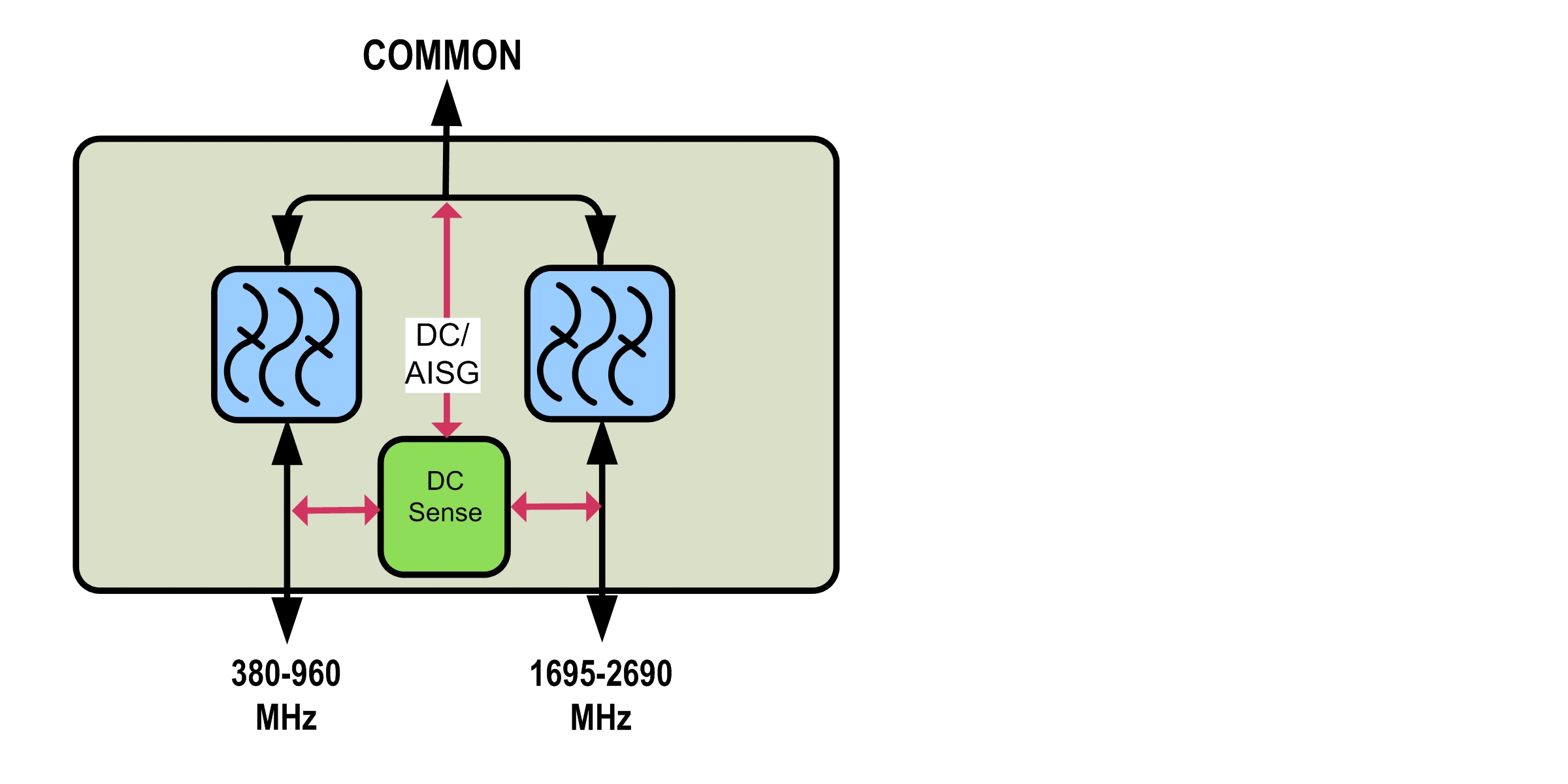 Diplexer, 380–960 MHz/1695–2690 MHz,dc Sense,4.3-10