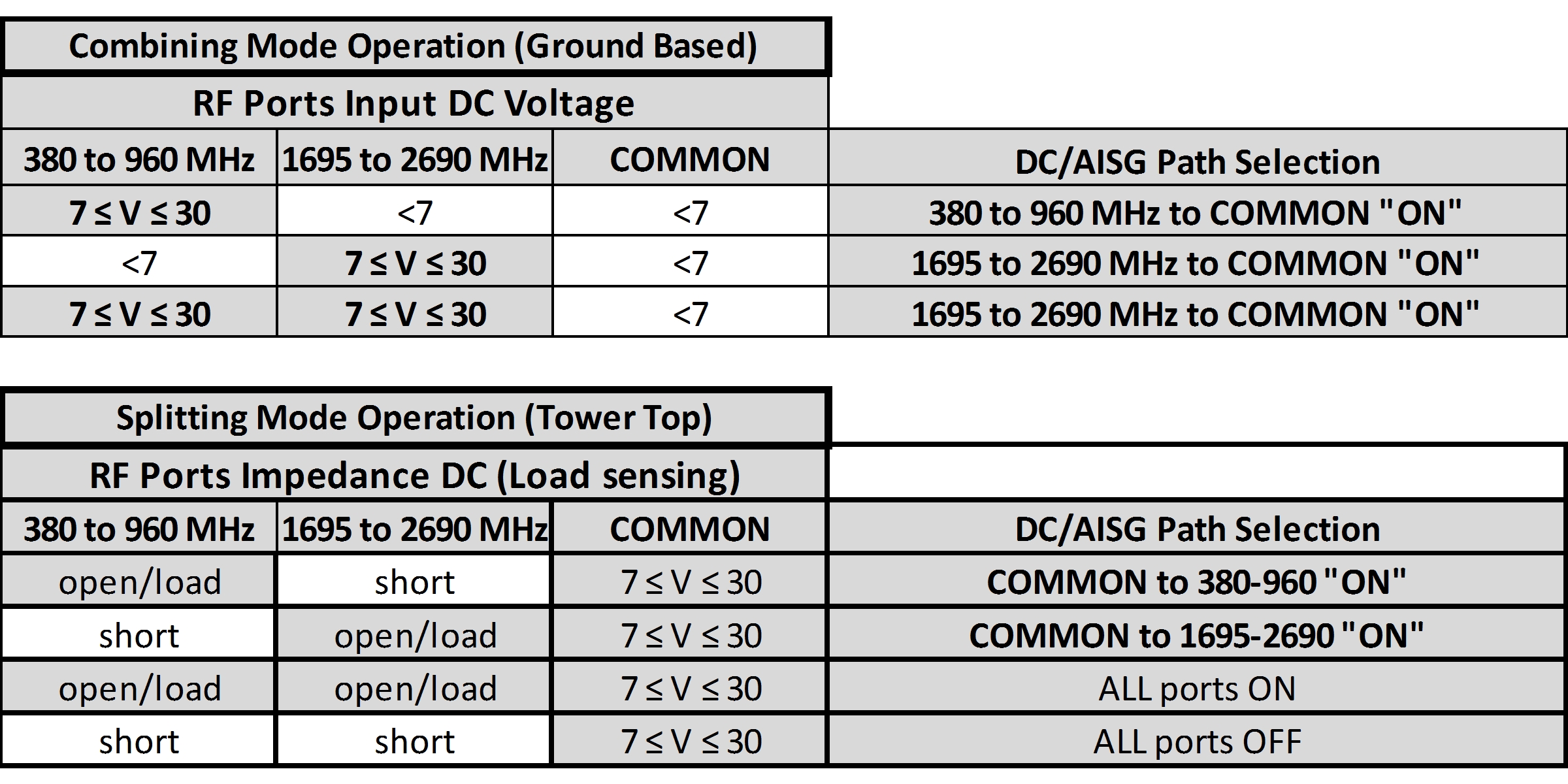 | dc/AISG Pass-through Path | See logic table |