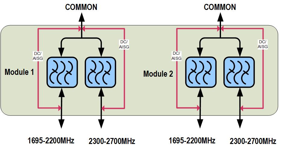 | dc/AISG Pass-through, combiner | Branch 1 | Branch 2 |