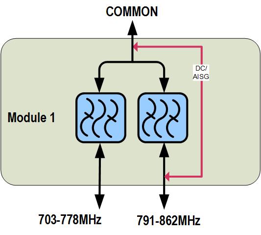 Single Diplexer 700/800 DC Bypass at 800MHz port, 4.3-10 connectors