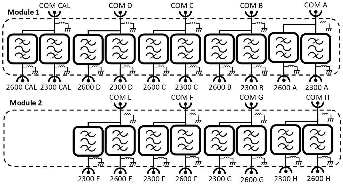 Ultra Compact Octa Diplexer 2300-2400/2570-2595 MHz, No dc bypass