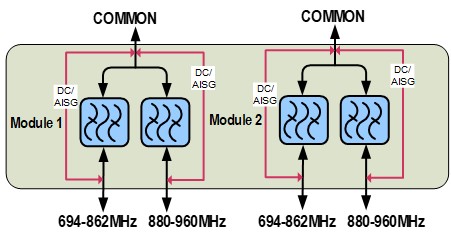 | dc/AISG Pass-through, combiner | Branch 1 | Branch 2 |
