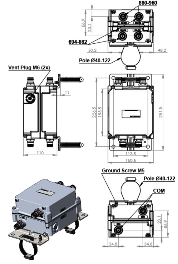 - Designed for network modernization application, introduction of LTE700 and LTE800 on existing site