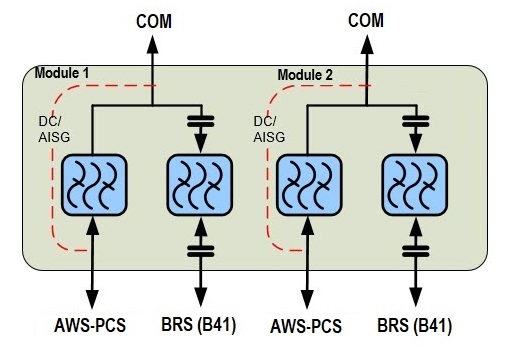 Ultra-Compact Twin Diplexer PCS-AWS/BRS, DC/AISG on PCS-AWS, NEX10 Connectors