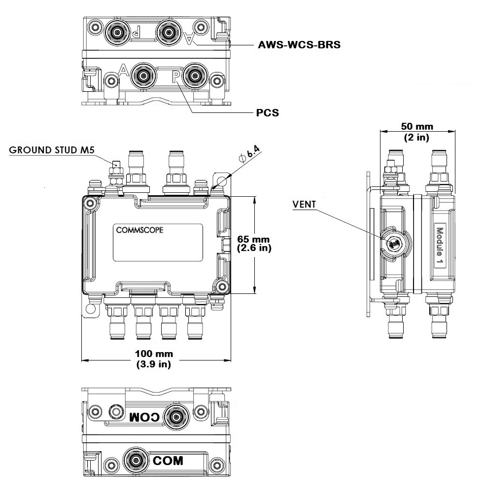 Ultra Compact Twin Diplexer PCS/AWS+WCS+BRS, DC on AWS/WCS/BRS, NEX10 Connectors