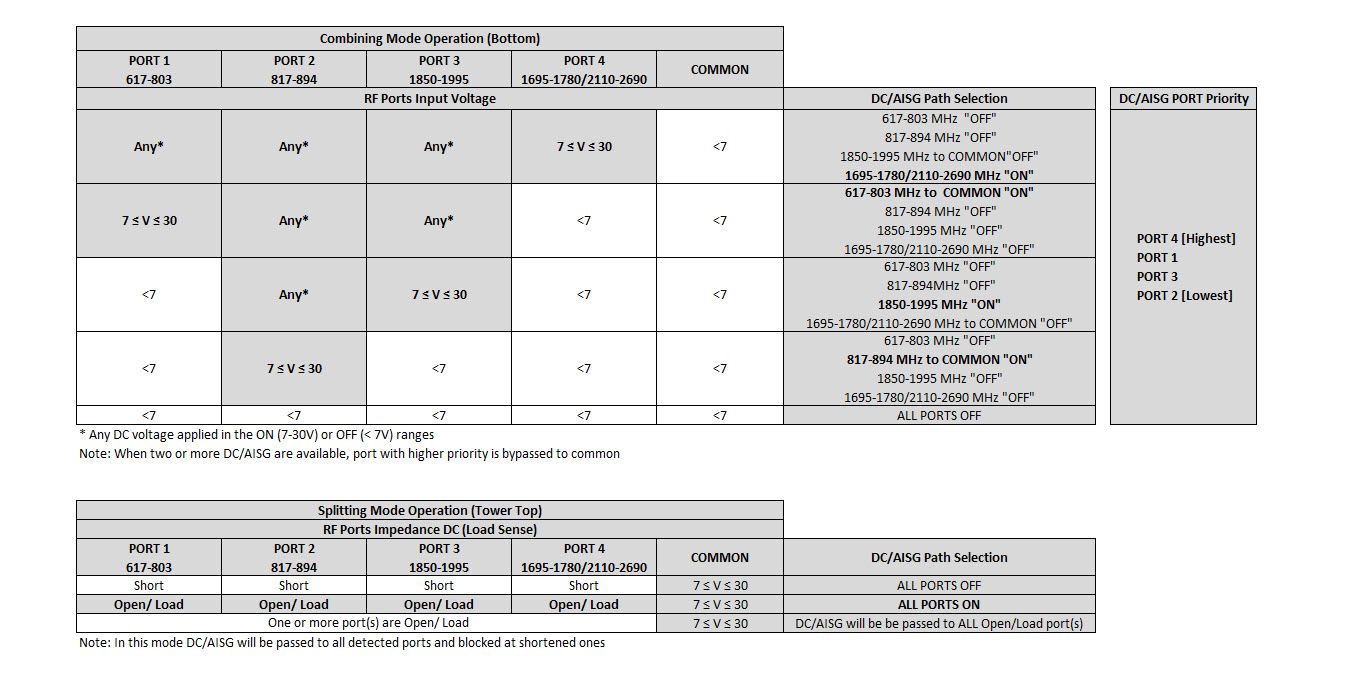 Port Designation 617-803 817-894 PCS AWS+WCS+BRS AWS+WCS+BRS