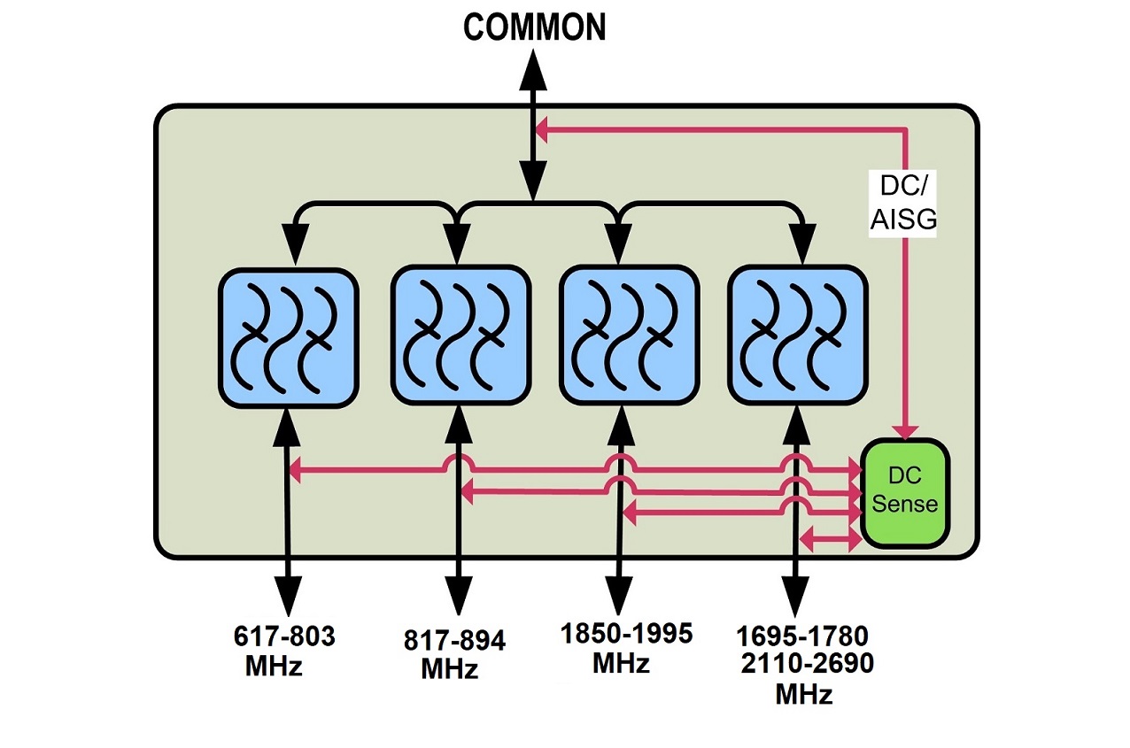 Quadplexer, 600/800/PCS/AWS+WCS+BRS, DC Sense, 4.3-10