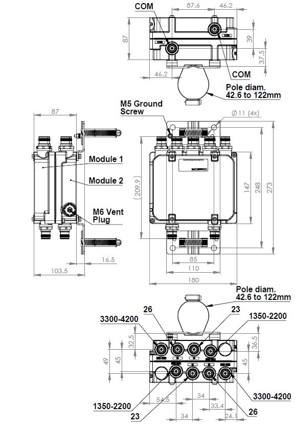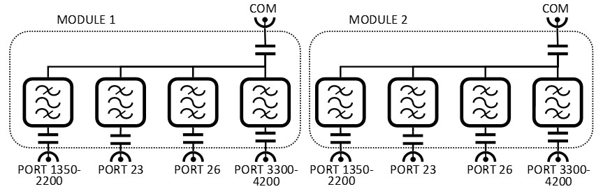 Twin Quadplexer 1350-2200/2300-2400/2496-2700/3300-4200, No dc bypass, with 4.3-10 connectors