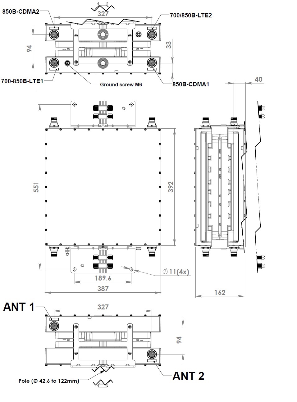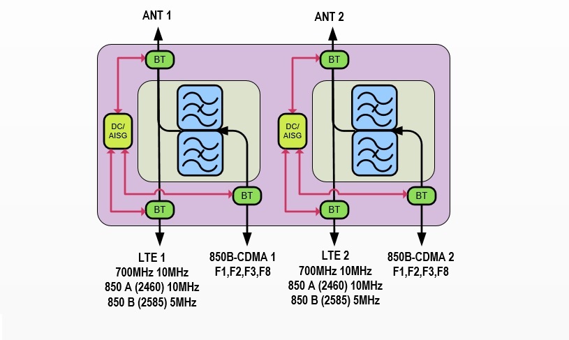- LTE port supports the use of dual band 700/850 radios or diplexed radio ports