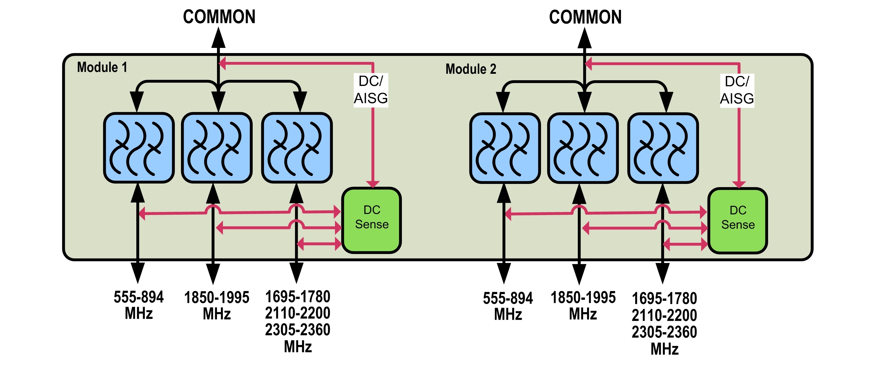 Twin Triplexer, 555-894/PCS/AWS+WCS, dc Sense,4.3-10