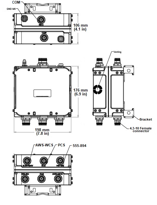 | Port Designation | 555-894MHz | PCS | AWS-WCS |