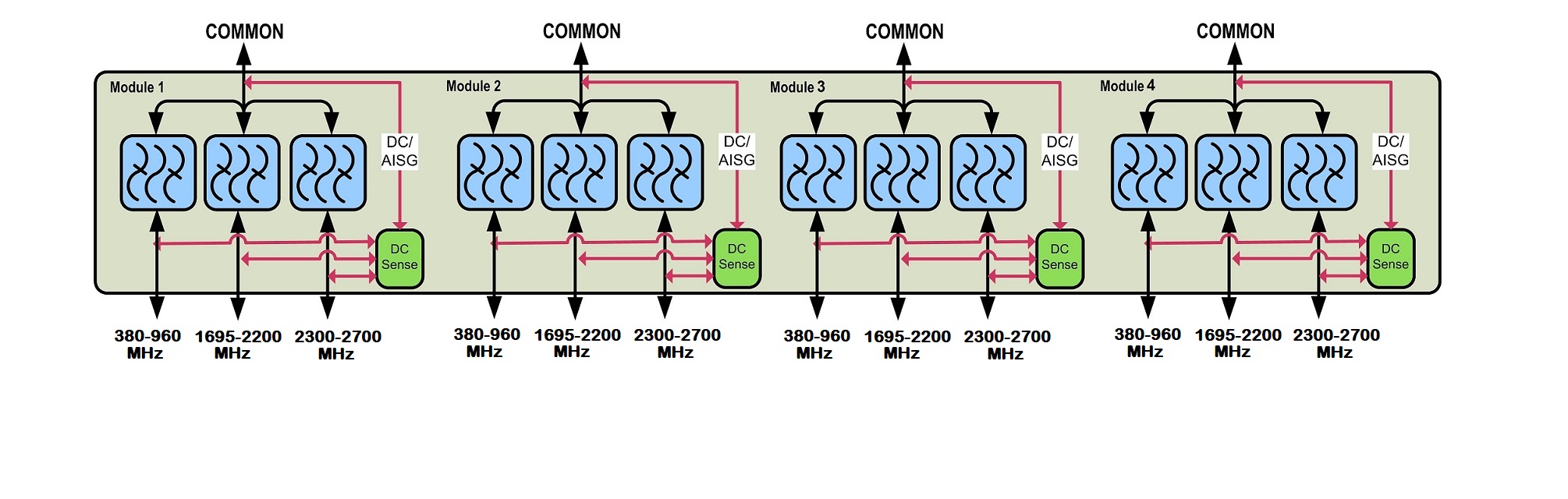 Quad Triplexer 380-960/1695-2200/2300- 2700, DC-sense with 4.3-10 connectors