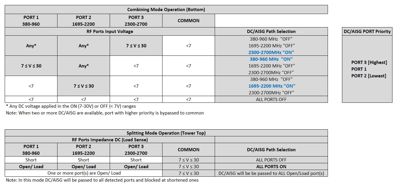 | Port Designation | 380-960 | 1695-2200 | 2300-2700 |