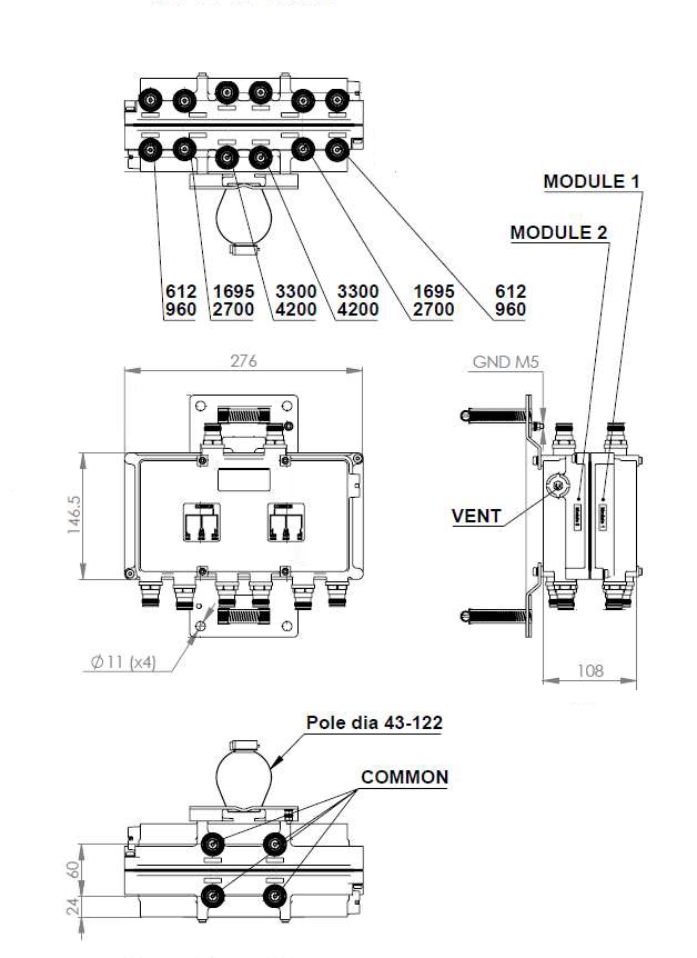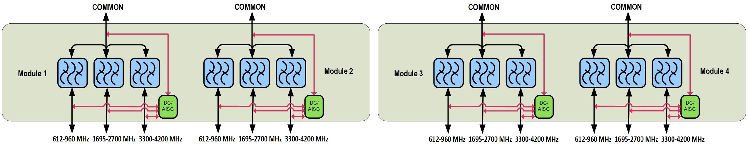 Quad Triplexer 612-960/1695-2700/3300- 4200 MHz, 4.3-10 connectors, DC sense