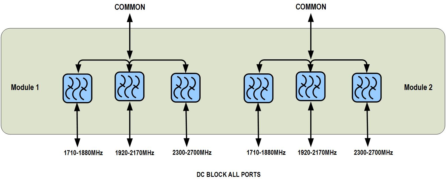 | dc/AISG Pass-through, combiner | dc/AISG blocking on all ports |