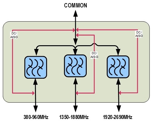 | dc/AISG Pass-through, demultiplexer | Branch 1 | Branch 2 | Branch 3 |