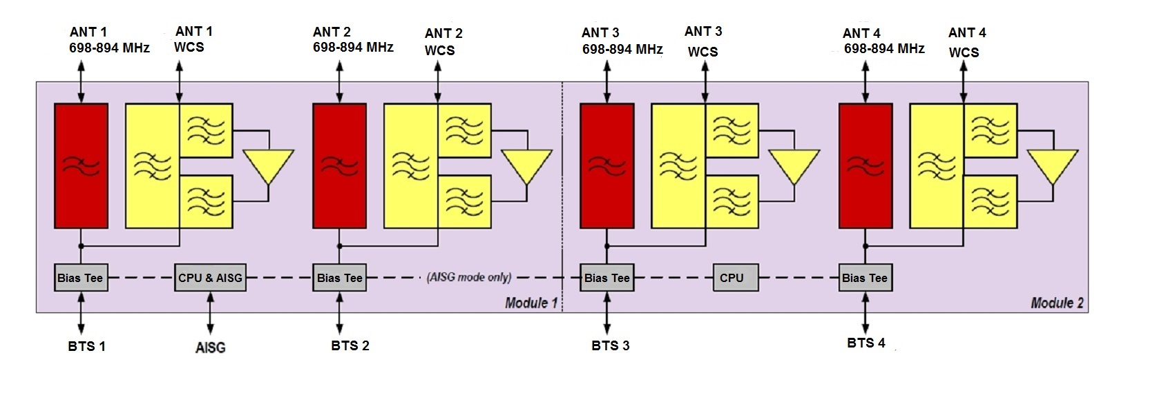 Quad Tower Mounted Amplifier WCS with 700-850 Bypass AISG