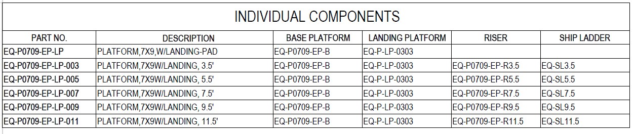 Elevated Equipment Platform Kit Series with 7' x 9' Base Platform - Multiple Heights Available from 3.5' to 11.5' - Includes landing, stairs, railings, elevation kits & H-frame