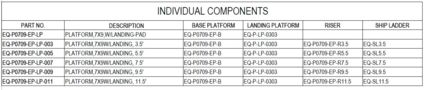 | Included | Frame | Grating | Hardware | Legs | Platform | Rail |